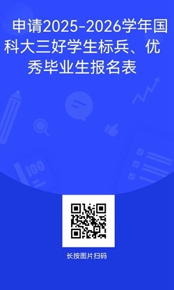 请有意申请2025-2026学年国科大“三好学生标兵”或“优秀毕业生”(只能二选一,不能同时申请)的同学,务必于4月27日中午12点前将相关材料电子版发至yangmg@sxicc.ac.cn(邮件主题:姓名+博/硕士+2025-2026学年 “三好学生标兵”/“优秀毕业生”申请材料),纸质版材料交至研究生办公室,同时需扫描下方二维码完成在线报名。另外,请提前准备答辩PPT,个人陈述5分钟,并于5月6日中午12点前将答辩PPT发送至yangmg@sxicc.ac.cn,邮件名和PPT请以“姓名+博/硕士+2025-2026学年 “三好学生标兵”/“优秀毕业生”答辩PPT”命名。如参加答辩方式(现场答辩/在线答辩)有变动,请及时电话并短信告知。